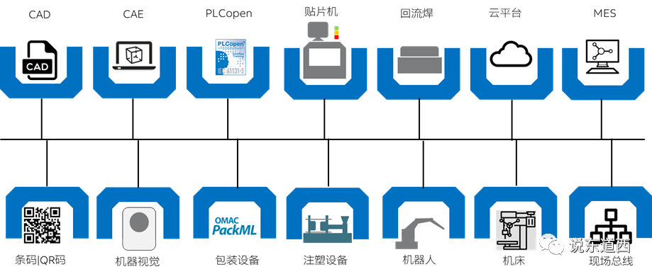 其實(shí),OPC UA核心是解決協(xié)作中的數(shù)據(jù)訪問問題,像一個(gè)手機(jī)工廠,包括了注塑、鈑金、電子、包裝、機(jī)器人、物流、視覺各種連接需求,而傳統(tǒng)在垂直行業(yè)的信息模型如Automation ML、PackML、EUROMAP、MTConnect、AutoID等都需要用統(tǒng)一框架來進(jìn)行實(shí)現(xiàn),否則,就又遇到大量的工程編程的接口連接問題。