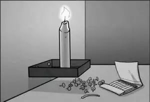 許多人嘗試用圖釘把蠟燭釘在墻上,行不通。有些人想到他們可以點(diǎn)燃火柴,熔化蠟燭的底部,嘗試把它黏在墻上。