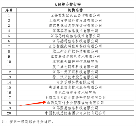 山西風(fēng)雨竹企業(yè)管理咨詢有限公司成功入選A級咨詢機構(gòu)綜合排行榜