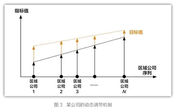 我們在分析了該公司各區(qū)域公司上年度的實(shí)際表現(xiàn)后,創(chuàng)造性地使用了一套“動態(tài)調(diào)節(jié)機(jī)制”,解決了問題的關(guān)鍵點(diǎn)(見圖3)。