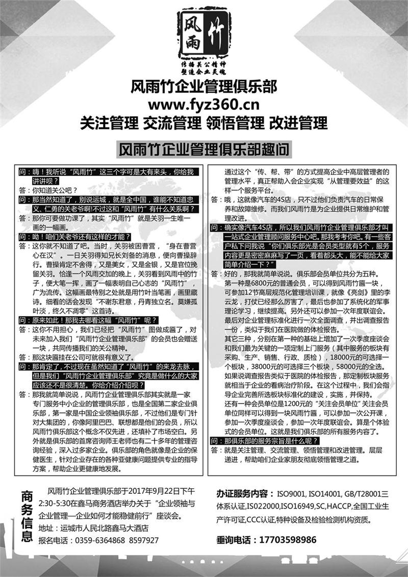 風雨竹企業(yè)領(lǐng)袖與企業(yè)管理座談會-登報信息