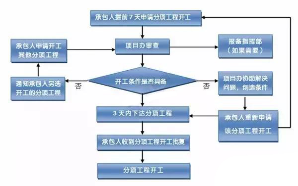 如何高效組織項目的各項管理工作,優(yōu)質(zhì)高效完成建設(shè)任務(wù),是作為項目管理人員時時刻刻都在關(guān)注的問題。而在項目部的實際管理工作中,經(jīng)常出現(xiàn)各種協(xié)調(diào)未果、措施不落實、計劃成空談、管理工作效率低下等現(xiàn)象。下面這些框圖,涵蓋了從項目開工到竣工豐富的工作內(nèi)容,無論是以此來規(guī)范自身管理工作,或是作為施組方案編制的圖表素材,都是大有用處的。